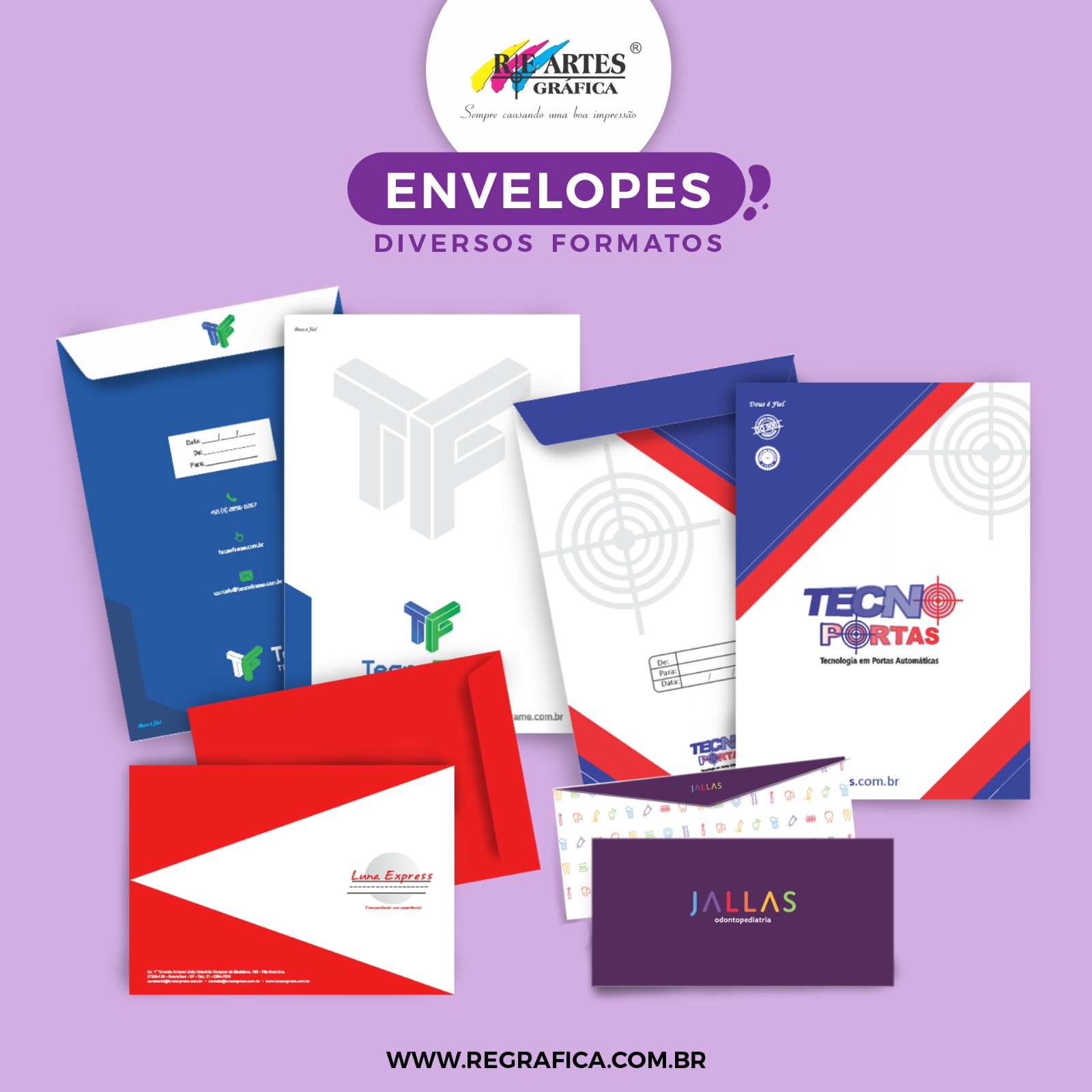 Envelopes que garantem o envio seguro de documentos, com opções de tamanhos e acabamentos que destacam sua marca.
